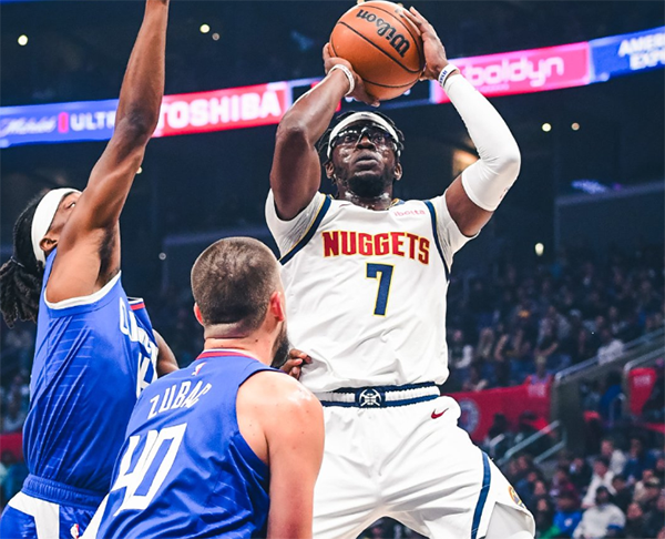 客场对阵快船,约基奇、穆雷和戈登都缺席比赛,在缺兵少将的情况下,雷吉-杰克逊和小乔丹之间的二人战术打得十分流畅,带领掘金残阵与快船打得十分胶着;虽然掘金第二节一度落后到11分,但雷吉手感滚烫,不管是面对哈登、曼恩还是小卡,雷吉都能砍分,带队12-0反超比分,半场打完掘金58-56领先快船2分。