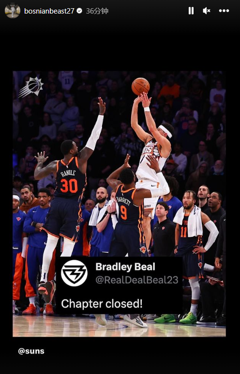 太阳众将集体夸赞布克,比尔、努尔基奇晒布克绝杀的瞬间照。