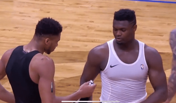 当年的詹姆斯被批打球纯靠身体,没有一点技术含量。直到詹姆斯黄袍加身,拿到了第一个总冠军,外界对他的质疑声才渐渐消失了!如今的字母哥,也遇到了和当年詹姆斯一样的境况。但你要是说到身体强壮程度,蔡恩威廉森可一点也不比字母哥弱。在一次字母哥和蔡恩威廉森交换球衣时,字母哥明显小了一大圈。看看蔡恩威廉森这肩宽,这骨架。以后再也不敢说字母哥是最壮的了!