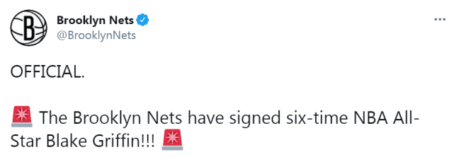 “我们很幸运能够在阵容中增添布雷克(格里芬)这种级别的球员,”篮网总经理马克斯说,“布雷克是一个全能的前场球员,他在我们的联盟有着一长串的成功履历,我们对他在布鲁克林场内场外即将带来的影响感到兴奋。”