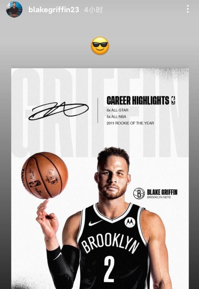 和篮网签约后的格里芬是啥心情?他在推特上转发了篮网官方和自己签约的消息,并在IG社媒上晒出了一个戴墨镜大笑的表情,显然,能够加盟一支有望冲冠的球队,格里芬太开心了。格里芬之前效力的活塞10胜26负,排名东部垫底,如今效力的篮网24胜13负,高居东部第二,距离东部榜首的费城