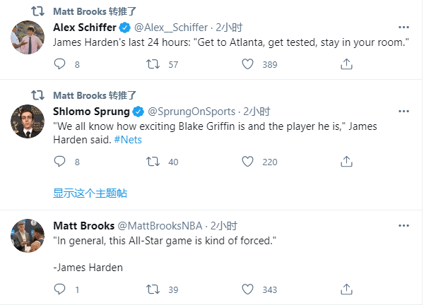 谈到今年全明星赛,哈登表示:总体来说,我们是被迫参加全明星赛,是联盟强加给我们的;谈到过去24小时,哈登表示:来到亚特兰大,接受检测然后一直待在房间里。