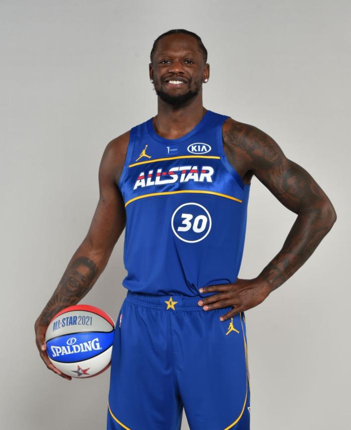由于恩比德被迫退出全明星赛,锡恩顶替恩比德进入杜兰特队首发阵容,职业生涯首次首发,胖虎这姿势和老詹的几乎一模一样,尼克斯球星兰德尔也是首次参加全明星。