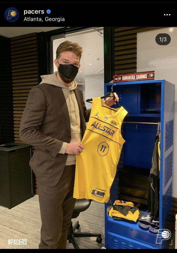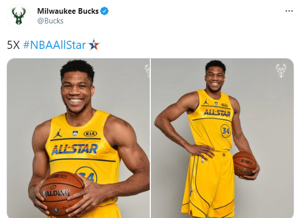 詹姆斯队字母哥身穿黄色34号,小萨博尼斯晒出自己的11号球衣,还有利拉德和杰伦-布朗等人;看了一下詹姆斯队全明星,再来看看杜兰特队的情况。