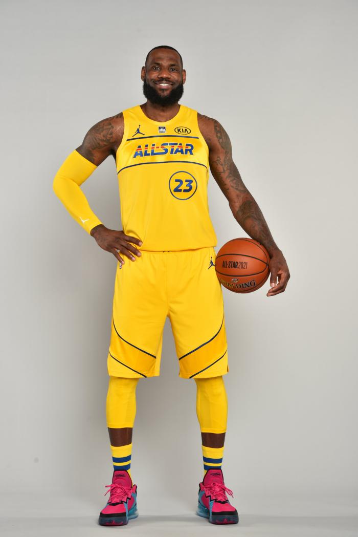 36岁詹姆斯还有一张单手掐腰,抱着篮球的定妆照,整个人的状态很好,职业生涯第18年,第17次参加全明星正赛,而且全是首发出战,詹姆斯有望再破多项全明星赛历史纪录。