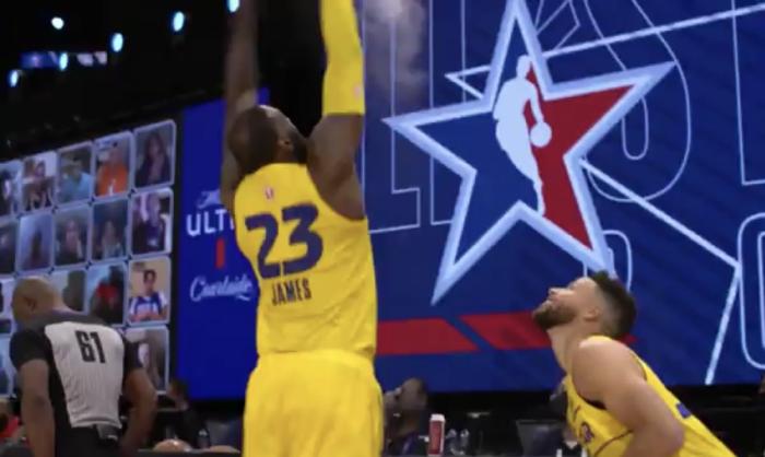 詹姆斯队众球星亮相时,场上出现一点小插曲。