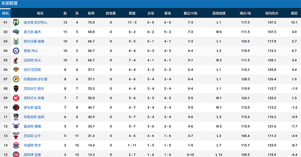 本赛季至今,魔术多项数据排名前列,包括