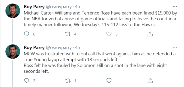 3月4日魔术不敌老鹰的比赛,比赛还剩18秒时,迈卡威在防守特雷-杨上篮时被吹罚了一次防守犯规,迈卡威认为自己的动作没有问题。比赛还剩8秒时,罗斯认为他的抛投被犯规,但裁判没有吹罚。两人辱骂比赛官员和拒绝离场,吃到了联盟的罚单。