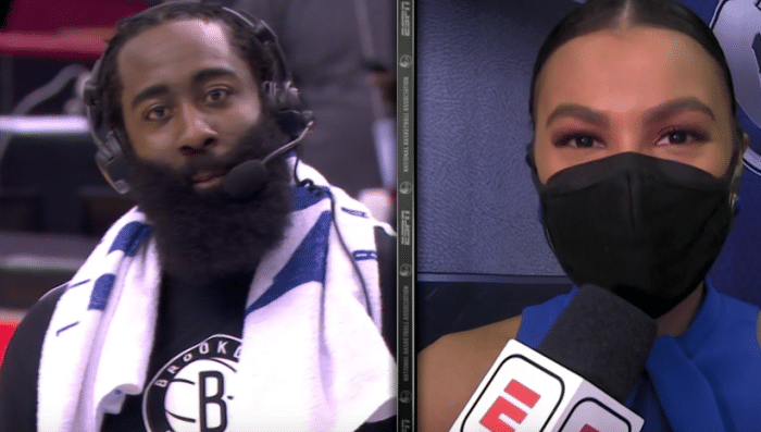 比赛结束之后,哈登接受连线采访,他一共回答了三个问题: