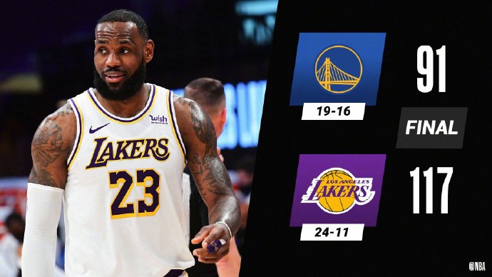 北京时间3月1日讯湖人今日坐镇主场迎来勇士的挑战,湖人在上一场击败开拓者结束糟糕的4连败,勇士则在近期取得3连胜状态正佳。首节比赛勇士一头一尾的糟糕表现直接导致大比分落后,湖人开局以小加索尔为首连砍9分,他们一波20-5的攻势早早就取得两位数领先,这一节最后3分钟勇士再次哑火一分未得,湖人再送一波12-0的进攻首节就拿到20分的领先。次节勇士在开局表现不错的情况下再度遭遇接近4分钟的得分荒,而湖人期间再送一波11-0的进攻,半场结束时湖人优势已经达到了29分。下半场勇士虽然进攻端跟上湖人的节奏但无法扭转局势,湖人完全掌控比赛牢牢保持着30分上下的领先。最终,湖人主场以117-91大胜勇士,并终结勇士3连胜。