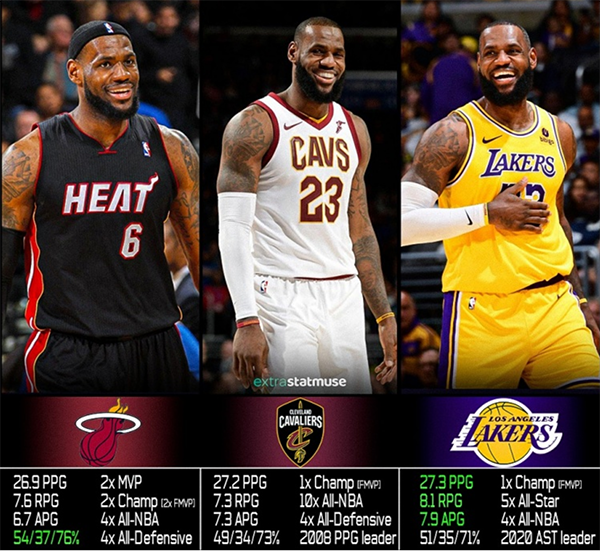 而且詹姆斯没有因为年龄大,就失去了战斗力,反倒成为“越老越妖”的代表性球员,湖人时期的詹姆斯场均得到27.3分8.1篮板7.9助攻,均高于热火和骑士时期。足以看出岁月没有在詹姆斯的身上留下太多的痕迹,他依旧可以通过自己的表现,影响比赛。