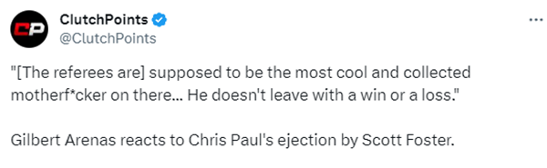 对于被福斯特驱逐这件事,赛后保罗本人表示:几年前我们有过冲突,这是私人恩怨。联盟每个人都知道,那是个与我儿子有关系的冲突。所以我对裁判说话粗鲁,我可以接受裁判的观点,但不要用技术犯规来表达你的观点。