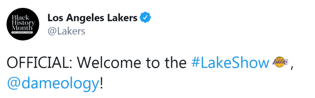 178直播讯 北京时间2月27日,湖人官方宣布,球队已经和自由球员达米安-琼斯签下一份10天短合同。官方推特晒出了琼斯身穿湖人球衣的图片,并配文写道:“欢迎来到湖人秀,@达米安-琼斯!”
