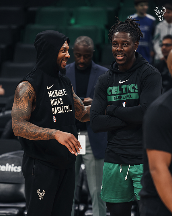 在球场上,霍勒迪和利拉德击掌、拥抱以及开心热聊,雄鹿官方晒出两人的合影,两人都咧嘴大笑十分开心;在今年休赛期,雄鹿、太阳和开拓者达成重磅三方大交易,利拉德加盟雄鹿,霍勒迪被送到开拓者,之后霍勒迪又被开拓者送到凯尔特人。