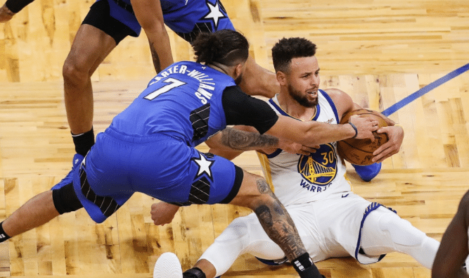 末节勇士轰出一波9-0直接将优势拉大到两位数,魔术将分差缩小到4分的时候库里和追梦格林重新登场。库里助攻达米恩-李远投三分命中。库里的远投没有投进,随后他的上篮被奥基基帽下。魔术113-112强势反超的时候,库里抛投打进,可惜的是随后魔术三分球连续投进,库里还有失误。库里在最后一分钟连续命中三分球,分差缩小到1分,可惜的是无缘逆转,最终魔术拿下胜利。