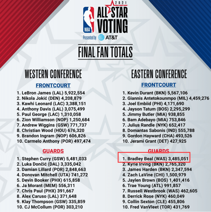 不过很显然比尔用自己的表现证明他可以进入到NBA全明星的首发阵容,他也完成了逆袭,在得知自己成为了全明星的东部首发球员时,比尔也激动的表示:“能够生涯首次入选全明星首发真的很荣幸,我想要感谢球迷们,媒体以及球员们选我来代表奇才参加全明星周末,我还想感谢我的队友和教练,感谢奇才管理层,也感谢队友们在这个独一无二的赛季里始终支持我们。”