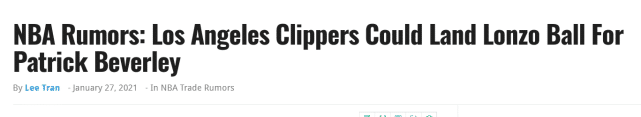 178直播1月28日讯 洛杉矶快船是2021年总冠军的有力竞争者,但要想给湖人带来更大的威胁,他们还得通过交易补强,特别是在控卫的位置上。北京时间1月28日,美媒Fadeaway World建议快船和鹈鹕交易,用贝弗利换来球哥,达成各取所需的效果。