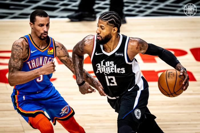 178直播讯 北京时间1月25日,快船主场再次击败雷霆,喜提7连胜的同时又反超爵士和湖人从西部第三升到西部第一,小卡出战36分钟24投14中轰下34分9篮板8助攻,关键时刻一攻一防终结比赛,乔治状态低迷,全场出战33分钟13投4中、三分8中2拿到11分5篮板4助攻,最后4分多钟更是坐在替补席遭弃用。
