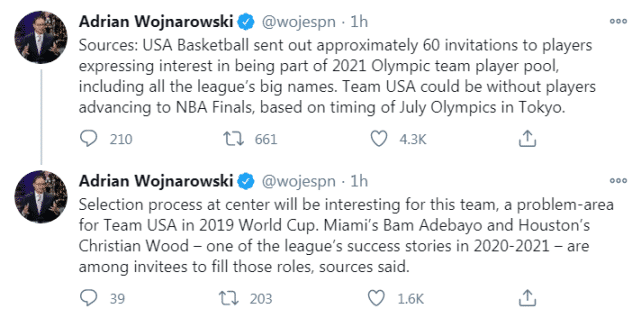 178直播讯 北京时间1月24日,美国男篮已经开始2021年奥运会的准备工作,他们向大约60名球员发出了邀请,并将在他们之中选出参加东京奥运会的球队阵容。