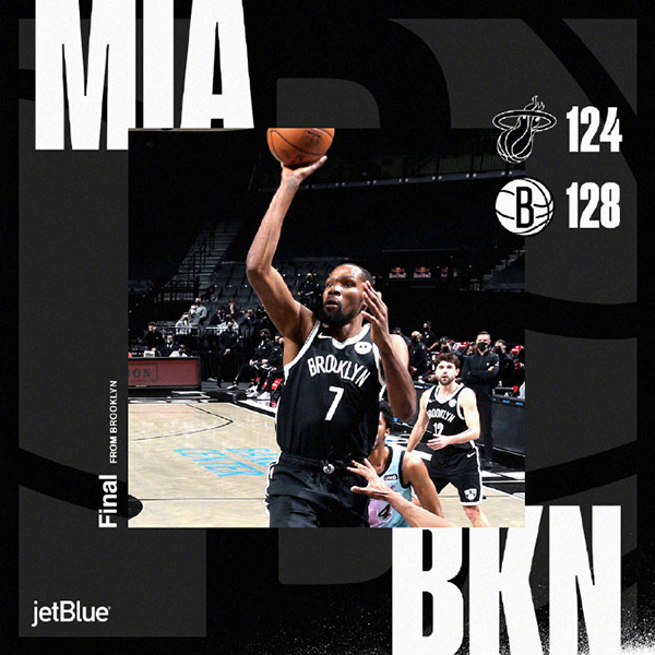 篮网128-124扑灭热火 杜兰特31分 欧文28+6+7