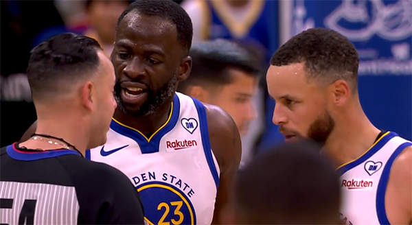 178直播讯 北京时间3月28日,在勇士和魔术比赛中,勇士悍将追梦格林抱怨裁判,开场216秒连吃两T被驱逐离场,库里满脸无奈;格林赛季4次被驱逐联盟第一。