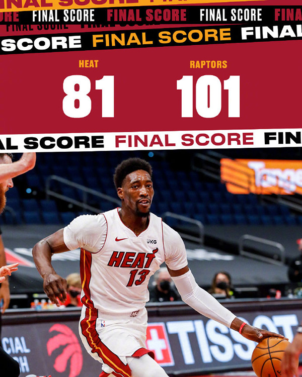猛龙101-81大胜热火 西卡13+14+5 鲍威尔23分