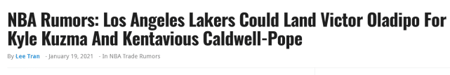 178直播1月20日讯 欧文归队,篮网三巨头即将迎来首演。湖人的詹姆斯和浓眉够不够对抗他们呢?北京时间1月20日,美媒Fadeaway World建议湖人和火箭完成交易,用库兹马和波普去换来火箭的奥拉迪波,打造三巨头对抗篮网。