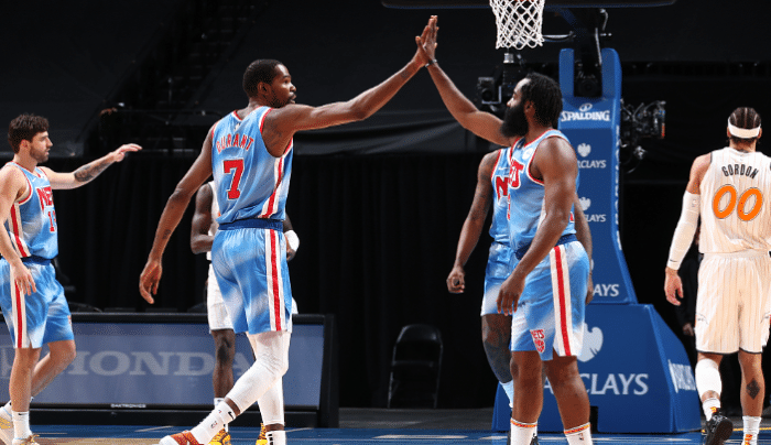 178直播1月17日讯 NBA常规赛关注度最高的要说是篮网和魔术的对决了,哈登迎来自己的篮网生涯首秀,最终篮网以122-115击败对手,迎来3连胜。杜兰特拿下42分,备受瞩目的哈登砍下32分12篮板14助攻4抢断9失误的数据,首秀就砍下三双,这也是篮网第一人,首秀就砍下30+的三双,NBA历史第一人。同时哈登的14次助攻也是篮网的新纪录,首战就打破一系列的纪录,再加上带队取得胜利,这样的哈登首秀确实很完美。