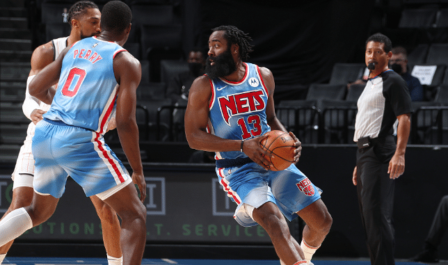 178直播1月17日讯 NBA常规赛篮网以7分优势击败魔术,迎来3连胜。此役哈登迎来了自己在篮网生涯的首秀,他全场比赛砍下32分12篮板14助攻4抢断和9次失误的数据,虽然首节还只有通过罚球的2分入账,但之后哈登的表现很不错,尤其是第三节带队能力体现了出来,同时末节关键时刻造杀伤和罚球都很关键。首秀就轰下30+的三双,和也成为了联盟第一个做到这样成就的人,而首秀三双和单场14次助攻都是篮网的新纪录。