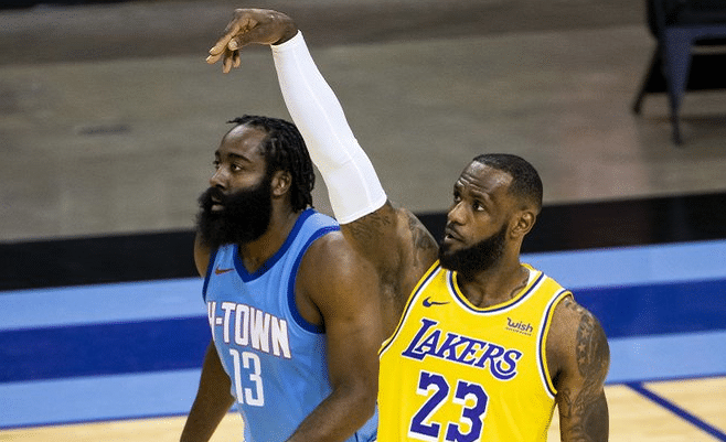 詹姆斯和哈登之间也是惺惺相惜的,要知道的是前段时间哈登还和詹姆斯交手,哈登的火箭8年生涯最后两战都是面对的詹姆斯,不过两场比赛哈登得分都不超过20分,而詹姆斯则是带队双杀当时还在火箭效力的哈登,两战净胜35分。