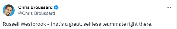 名嘴Chris Broussard盛赞威少一名伟大且无私的队友。