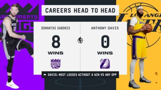 据统计,浓眉生涯至今对阵小萨博尼斯的交手战绩是0胜8负,连一场都没赢过,不得不说,小萨就像是浓眉生涯的最大克星。
