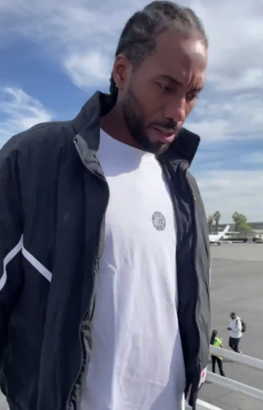 目前快船众将已经乘坐飞机飞往丹佛,他们将挑战卫冕冠军掘金,小卡面无表情,哈登提着大包小包,登机时表情严肃;威少身穿白色T恤,一路小跑着登上飞机,而且面带微笑,整个人的心情很放松。