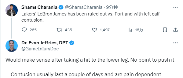 178直播11月13日,湖人官方宣布,詹姆斯因小腿挫伤缺战开拓者,浓眉(臀部痉挛)可以出战,这是詹姆斯本赛季首次因伤休战;名记透露詹姆斯一瘸一拐离开球馆,医学专家表示疼痛会持续几天。