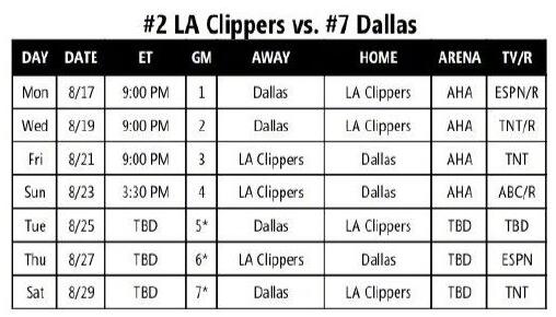 第五场:8月26日(如有需要) 快船(主)VS独行侠