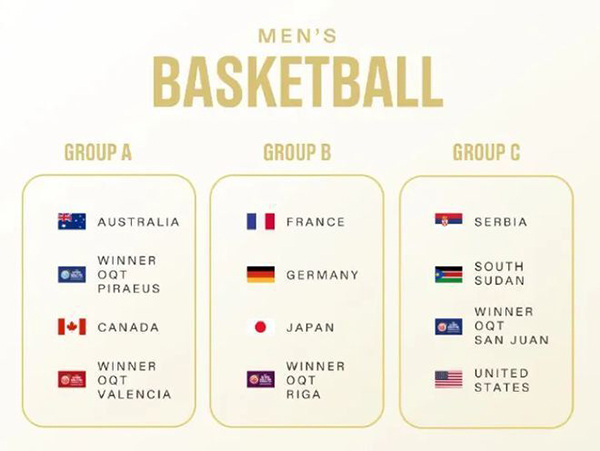 此前,奥运会男篮比赛进行分组抽签,美国男篮被分在了C组,同组的包括塞尔维亚、南苏丹和波多黎各赛区的胜者。他们将与约基奇提前过招,南苏丹阵中拥有2025年的状元热门,而美国男篮的另一个对手将在六支球队(意大利、巴林、科特迪瓦、立陶宛、墨西哥、波多黎)中产生。