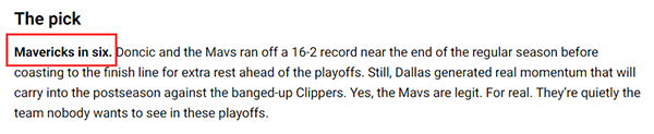 本赛季常规赛,小卡累计出战68场,场均得到23.7分6.1篮板2.6助攻,NBA官网预测独行侠4-2淘汰快船。