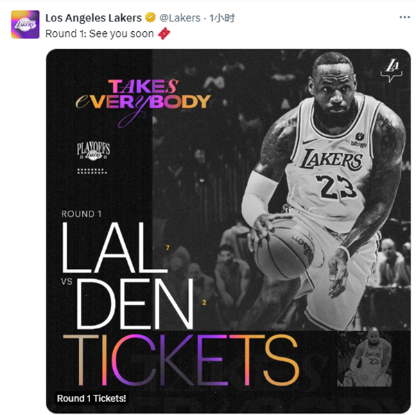 湖人官方晒照向掘金宣战:第一轮湖人大战掘金,很久就来了。