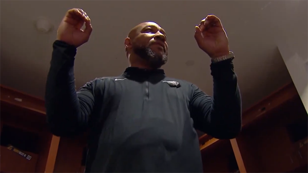 在更衣室中,湖人主帅哈姆化身鸡汤大师,哈姆鼓励全队:我们全队步调一致,现在都是0胜0负了,我们绝对不会退缩的。