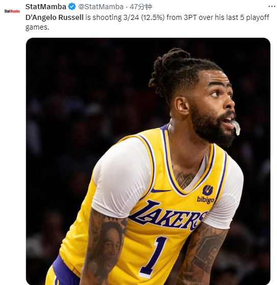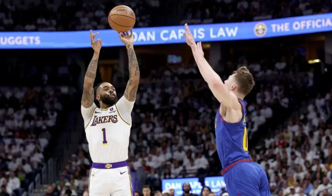 据统计,近5场季后赛对阵掘金,拉塞尔的三分球为24投3中,命中率仅有12.5%,究竟拉塞尔能否自我救赎?拭目以待吧。