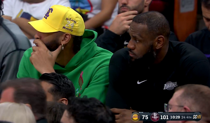 178直播11月09日讯 ,NBA常规赛湖人客场94-128惨败火箭34分遭遇三连败,詹姆斯18+6提前一节投降,坐替补席一脸失落;湖人输在哪?浓眉伤停导致内线失守,禁区被打爆了,三分投射仍旧十分糟糕,俨然变成了一支打铁大队。