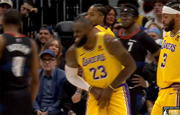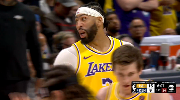 3分22秒詹姆斯下场休息,这和G1首节打满12分钟的轮换不同;浓眉搭档拉塞尔带队,浓眉连续中投得分,约基奇再中三分,第一节最后6.3秒,詹姆斯上场,拉塞尔造犯规不成被吹脱手失误,首节湖人28-24领先掘金4分。