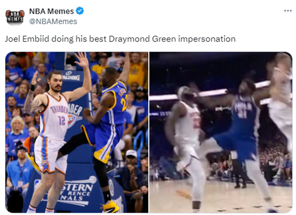 值得一提的是,恩比德与米罗对位时中投摔倒,裁判没有任何吹罚,追梦为恩比德抱不平,发推写道:大帝想要犯规我知道,但是这球不吹也太疯狂了。