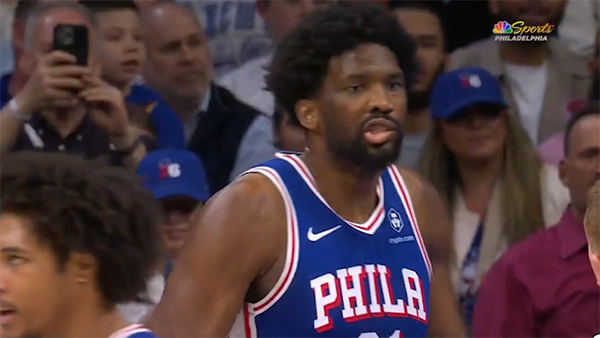 第一节4分34秒,恩比德防守倒地后伸手拉拽米罗的腿,导致米罗摔倒而且险些砸伤自己的膝盖,恩比德如此动作引不满,迪文琴佐为队友抱不平,与恩比德激烈互喷,最终恩比德吃到一级恶意犯规;名嘴帕金斯表示:恩比德应该被驱逐出场,那是什么狗屎动作,他可能会把对方搞伤。