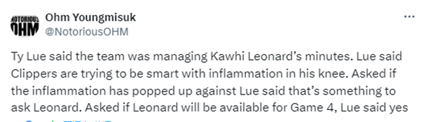 赛后小卡本人表示复出打完第一场比赛后他的膝盖并不想预期那样,相信自己会好起来的,小卡还表示:要么上场受限制要么直接不打,我想上场打球帮助球队,赛季这个阶段出现这种情况(伤病)我很沮丧。此外谈到G4,小卡表示:我想打。