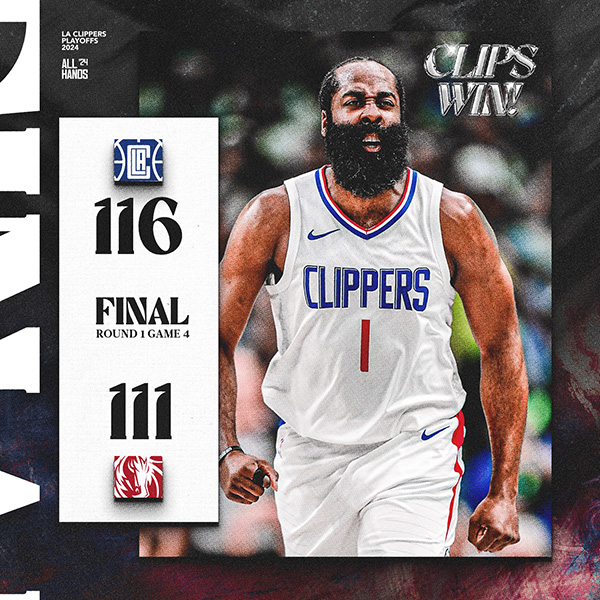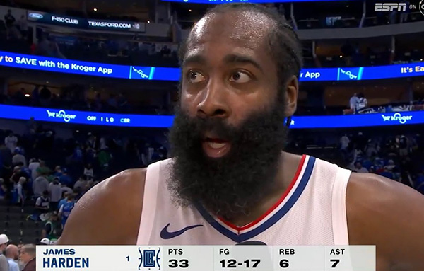 178直播讯 北京时间4月29日,快船G4客场116-111击败独行侠,总比分2-2两队打进天王山,哈登打出疯狂一战,全场出战40分钟,17投12中、三分5中4轰下33分7助攻6篮板,大秀后撤步三分和抛投两大杀招,末节8中6独砍15分统治比赛,拒绝31分大逆转。