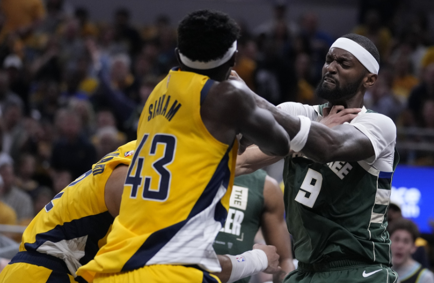 第一节仅仅开打7分钟,波蒂斯和内姆哈德发生火爆冲突,波蒂斯因推搡和挥拳连续吃到两个技术犯规,被驱逐离场,内姆哈德一次技犯;在缺少三大主力的情况下,雄鹿上半场和步行者打得十分胶着,半场打完雄鹿64-67仅落后3分。