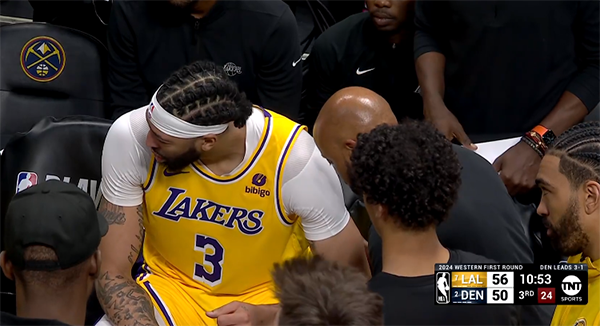 178直播讯 北京时间4月30日,NBA季后赛湖人和掘金G5正式开打,第三节湖人球星浓眉突然受伤,倒地不起十分痛苦,詹姆斯、哈姆都是十分担忧。