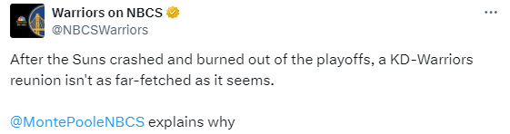 由于杜兰特对自己在太阳队的角色感到不满,勇士重新获得杜兰特的可能性比以前更高。