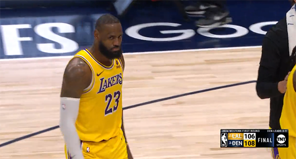 178直播讯 北京时间4月30日,湖人G5客场惨遭掘金准绝杀,总比分1-4被淘汰出局,39岁的詹姆斯全场苦战44分钟,21投11中拿到30分11助攻9篮板4抢断,崴脚拒绝下场,即使如此仍遭绝杀淘汰。